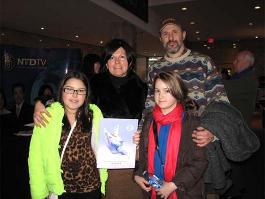 남편 그리고 두 아이와 함께 토론토에서 열린 션윈공연을 관람한 신문발행인 마이아 마스터.(사진=앨런 주 기자)